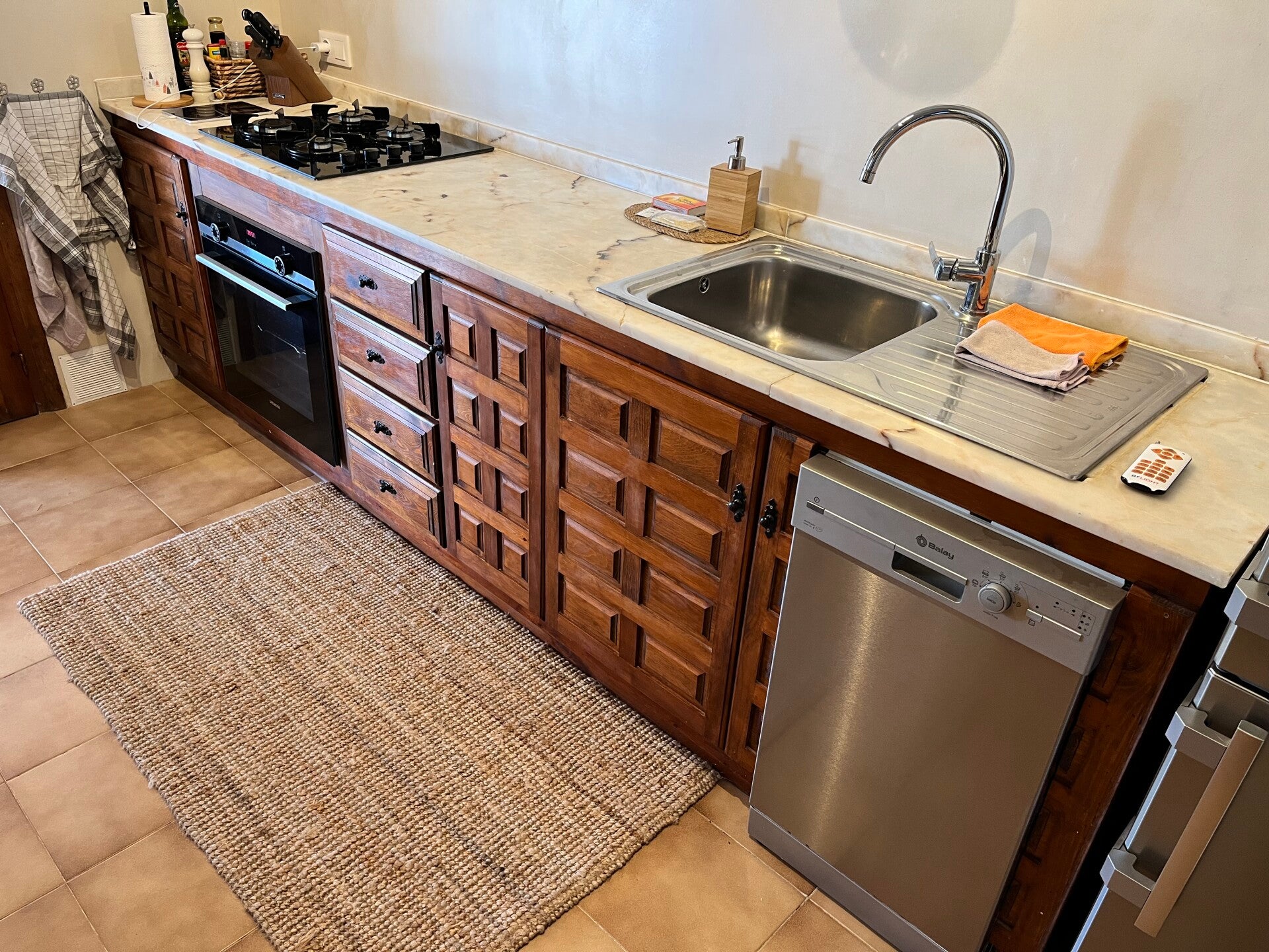 U KOMT DE WONING BINNEN VANUIT DE NAYA IN DE VOLLEDIG UITGERUSTE KEUKEN, VOORZIEN VAN AFWASMACHINE / OVEN / GASKOOKVUUR / KOELKAST / DIEPVRIES / KOFFIE APPARAAT / MICROGOLFOVEN