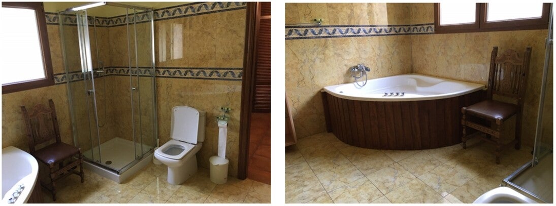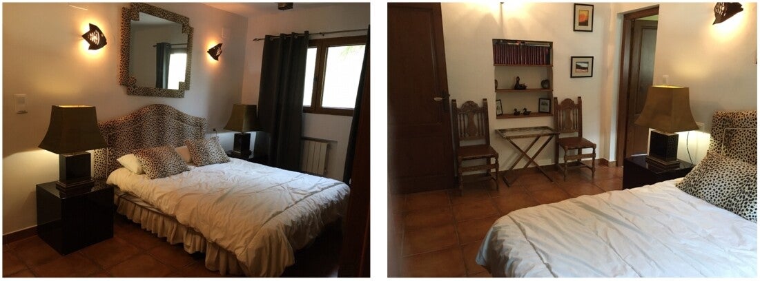 Er zijn 3 slaapkamers aanwezig, 2 kamers met een tweepersoonsbed en badkamers en suite en 1 kamer met 2 éénpersoonsbedden en badkamer apart.