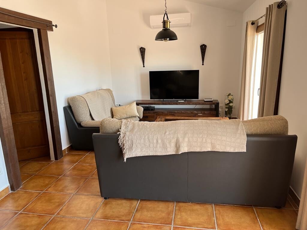 Er is een ruime leefruimte aanwezig met zithoek en eetkamer en een aparte authentieke keuken, er is een fantastisch buitenterras, deels overdekt, waar u gezellig kan ontbijten en een zithoek om te genieten van het prachtige uitzicht